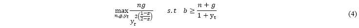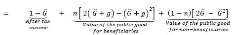 [1] In equilibrium, $G$ will never be in the decreasing part this functional form; monotonicity of