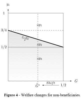 In the model, a representative NGO trades-off between the size of the project it finances and who benefits form it, as I assume that the NGO wishes to cater to the poor, but that this is costlier than satisfying the needs of the wealthy. While aversion to poverty results in higher costs, it mitigates the crowding out effect. The additional cost of targeting the poorest are worth enduring as they lessen inequalities even for non-beneficiaries and, to a degree, increase aggregated welfare by diminishing the size of the externality.
