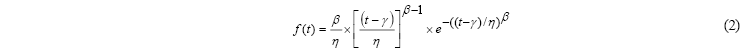 es el parámetro de escala, β = el parámetro de forma (o pendiente) y γ el parámetro de ubicación.