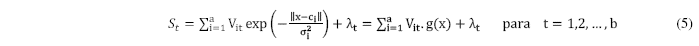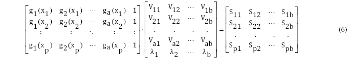 es el operador lineal matricial formado por la respuesta de las funciones de base radial ante el conjunto de los p datos de entrada. Este proceso de búsqueda de los pesos y bias de la capa de salida se puede formular de la siguiente manera: Hallar la matriz real V, de orden (a+1) x b, como la solución de la ecuación operacional lineal (7). Esta ecuación puede resolverse por el método de mínimos cuadrados generalizado, lo que garantiza que las redes neuronales de base radial dejen un error de casi cero en los datos de entrenamiento [10], [17]-[18] pero muchas veces un error grande en la validación o generalización [14], [22]. Interpretar la fase supervisada del entrenamiento como un problema inverso permite que se puedan aplicar técnicas de regularización para su solución [25]-[26]. La regularización es una estrategia que consiste en incorporar información conocida al problema, convirtiendo de ese modo el problema original que se desea resolver por otro, próximo al primero, pero que sea menos afectado por el ruido de los datos experimentales [27]-[28].