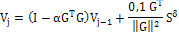 V= (eye(k+1) – alfa*G‘*G)*V+((0.1*G’)/(norm(G)^2))*Sd;