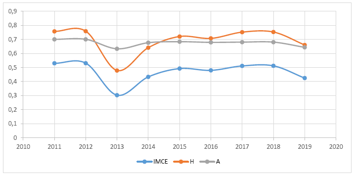 En la Figura 2 se puede apreciar el comportamiento de los tres indicadores para el periodo de estudio (2011-2019).