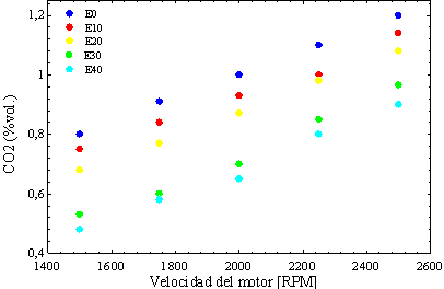 Figura 9: Efecto de la velocidad de un motor sobre las emisiones de CO2, adaptado de Mohammed et al [10].