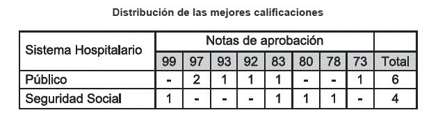 •       Nota promedio de 87,5 % para los internos de hospitales públicos.