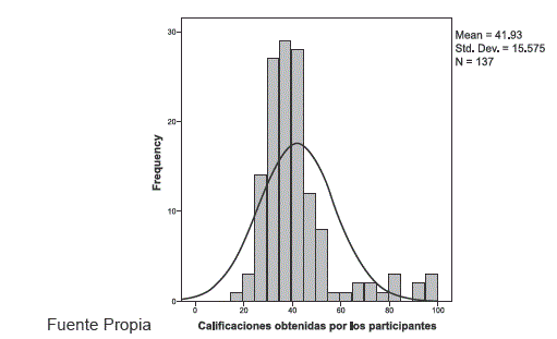 El universo de donde se tomó la población de estudio, constituía en un total de 251 internos de la gestión 2015, la muestra fue de 138. Posterior a una explicación del propósito de la prueba, la misma se inició a las 11:00 a.m., se prolongó a hasta las 13:15. En inicio el total de participantes fue de 138, debido a que uno de los participantes no señalo el lugar donde realizo su internado rotatorio, se tuvo que eliminarlo. La muestra final fue de 137 que equivale al 54,6 %, porcentaje de participantes que fortalece y le proporciona una mayor validez interna.