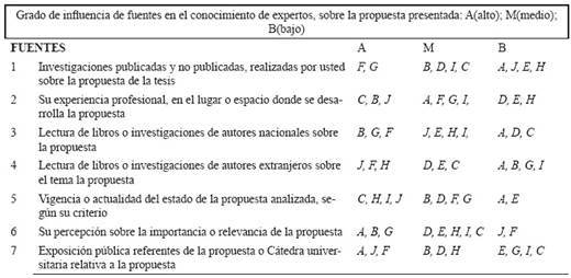 El cuadro anterior determina el número de expertos selecciones de acuerdo con el criterio de Alto y medio, luego se informará al experto sobre su inclusión en el peritaje y las instrucciones necesarias para contestar las preguntas. El listado final de los expertos es importante para la efectividad de la solución del problema y la valoración de la calidad de la solución del problema. El conocimiento de un experto sobre la propuesta se determina sobre la base de la actividad científica que realiza y la profundidad de conocimiento que tiene sobre la propuesta, así como de la relación Problema-Propuesta.