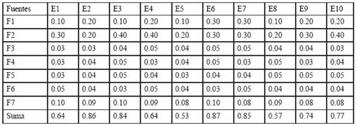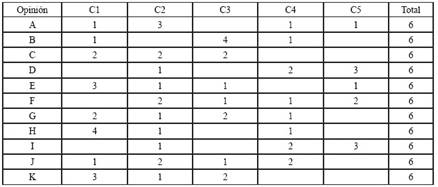 Tabla 4: Patrón para la ponderación de las respuestas