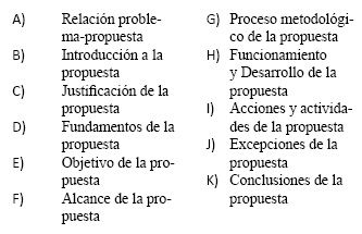 Tabla 8: Cuadro de criterios sobre la propuesta (partes a-k)