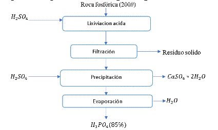 Figura 5.- Propuesta de flujograma para la producción de ácido fosfórico a partir de roca fosfórica (Zamora et al., 2023)