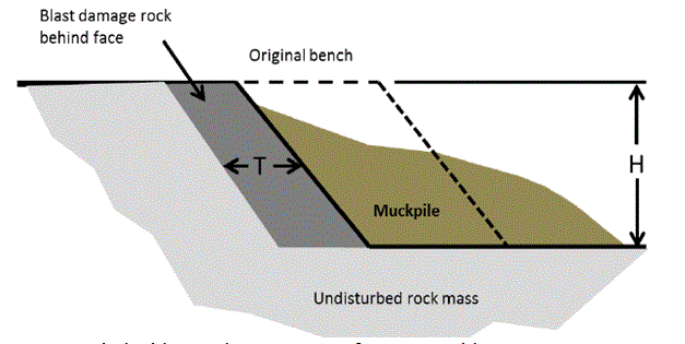 Figura 2. Bancada com zona induzida por detonacáo, conforme sugerido por HOEK E KARZULOVIC (2000).