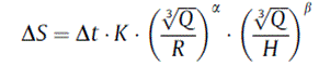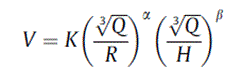 3.2.1 Fórmula Convencional de Sadowski É geralmente comum coletar dados de campo e realizar análise de regressão de acordo com a fórmula de Sadowski na Eq. (1) para investigar o efeito da elevacáo na vibracáo gerada por detonacáo. A Eq. (1) é principalmente baseada na fórmula de Sadowski obtida por regressão para prever a velocidade da vibracáo de detonacáo (LI et al., 2017).