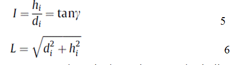 Onde AS é o deslocamento da vibracáo durante o processo de detonacáo; e At é o tempo de detonacáo. Um modelo simplificado do coeficiente de impacto da detonacáo é mostrado na Fig. 4. A taxa de inclinacáo I representa o gradiente da inclinacáo, que é calculado pela Eq. (5). O comprimento da inclinacáo L indica a distancia da base da encosta até o topo da encosta na Eq. (6). Quando consideramos o efeito da forma da encosta na detonacáo, quanto maior o ángulo da encosta, maior é o deslocamento da vibracáo. À medida que o comprimento da encosta aumenta, a distancia até o ponto de detonacáo aumenta, a energia gerada pela detonacáo continua a decair e o deslocamento da encosta diminui. Na área de estudada por WU et al., 2024, a altura de cada plataforma era muito maior que a largura de cada plataforma. Portanto, uma nova encosta é construida conectando o ponto final na base da elevacáo da detonacáo ao ponto final no topo da elevacáo da plataforma de cada plataforma.Ess a nova encosta é usada como a inclinacáo de dife > plataformas na encosta em múltiplos estágios, a qual pode ser determinada substituindo a fórmula na Eq. (7).