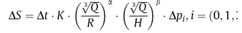 Ao considerar os parámetros de forma da encosta, tanto a largura d quanto a altura h podem ser determinadas pela taxa de inclinacáo Ieo comprimento da inclinacáo L. Portanto, a taxa de inclinacáo Ieo comprimento da inclinacáo L são escolhidos como os parámetros do fator de inclinacáo p. O fator de inclinacáo p é usado como um fator que afeta o deslocamento S, variando entre O e 1. Quanto maior a taxa de inclinacáo I, mais íngreme é a encosta e maior será o deslocamento resultante; enquanto quanto maior o comprimento da inclinacáo L, mais suave será a encosta e menor será o deslocamento. Assim, a taxa de inclinacáo I, que é proporcional ao fator de inclinacáo S e ao deslocamento p, é definida como o numerador, e o comprimento da inclinacáo L, que é inversamente proporcional ao fator de inclinacáo S e ao deslocamento p, é definido como o denominador. A taxa de inclinacáo I é o numerador do fator de inclinacáo S e do deslocamento p. O comprimento da inclinacáo Leo denominador do fator de inclinacáo S e do deslocamento p. Em seguida, as constantes c, d, e, e f são somadas, sendo consideradas como uma proporcionalidade linear. As constantes c, d, e, e f são recalculadas a partir do conjunto de dados coletados.