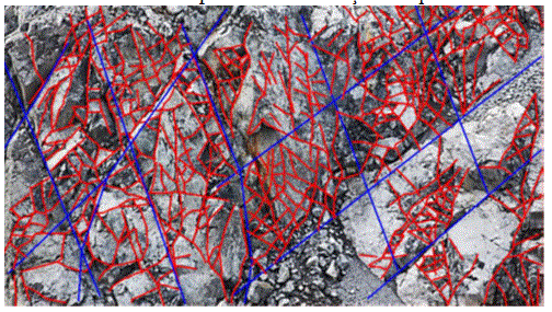 Fig. 8 Observa?ao em campo das fraturas de explosão e descontinuidade pré-existentes.