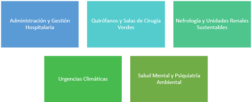 Otro de los grandes retos, se relaciona con el incremento de investigaciones y evidencia científica sobre los hospitales verdes y la enfermería. Desde el sector salud se ha avanzado en algunas publicaciones relacionando las especialidades médicas que se presenta a continuación (imagen 1).
