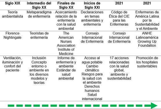Tabla 3 Evolución histórica de la enfermería con aspectos ambientales y de sustentabilidad.
