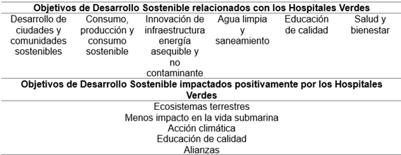 Tabla 4 Objetivos de Desarrollo Sostenible relacionados e impactados por los Hospitales Verdes