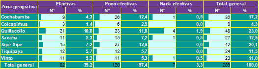 En Bolivia, estudios previos han identificado la persistencia de vinchucas en diferentes departamentos, con tasas de infestación variables. En el Chaco boliviano, se han reportado infestaciones superiores al 50 % en viviendas rurales, mientras que en La Paz la infestación es menor debido a su altitud y condiciones climáticas menos favorables para el vector (14). A nivel regional, países como Brasil y Colombia han implementado estrategias de control exitosas que han reducido la infestación domiciliaria a menos del 10 % (15), lo que resalta la necesidad de fortalecer el control en Cochabamba.