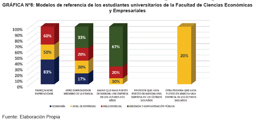 The results show that there is a purposeful intention towards the generation of ventures, but despite the authentic attitude and desire to have something of their own, they do not feel confident about its success, it is also important to rescue that they take as an example of entrepreneurs their parents or Close relatives.