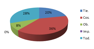 La causa principal como se muestra en la Figura 3.3 deriva en el poco conocimiento con un 48 %; sin embargo, las diferencias respecto a las demás causas no son muy amplias, lo que lleva a concluir que estas interactúan para tener como resultado un grado muy bajo de uso de técnicas e instrumentos para la ejecución de proyectos. El poco conocimiento se podría salvar con procesos de capacitación, pero si el personal no se percata de las interrelaciones entre estas causas, posiblemente no se solucionaría la raíz del problema; la poca importancia (28%), se origina en que los que deciden en estas organizaciones, no dan una aval político para el manejo gerencial de los proyectos, posiblemente, porque la consecución y uso de los recursos vienen en calidad de donación, y el equivocarse una y otra vez, no cuenta con un análisis de costo-beneficio para el uso racional de los recursos; las estructuras de este tipo de organizaciones, no cuenta con personal especializado en proyectos y su capacidad para la toma de decisiones es muy baja, estando las mayor de las veces en el nivel operativo de la estructura (36 %).