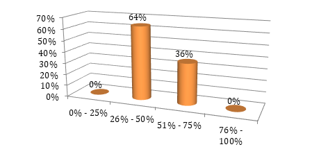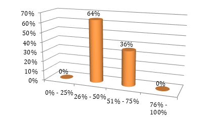 Para levantar información sobre la eficiencia y su relación con el tiempo utilizado en el proyecto, se ha tomado un año normal como es el del 2019, puesto que como se sabe el 2020 ha estado caracterizado por la pandemia del COVID-19, que ha ocasionado una completa paralización de las actividades que desarrollan las entidades no gubernamentales. La Figura 3.5 nos brinda información relativa a la eficiencia en el tiempo. Aproximadamente 2/3 de las entidades no lucrativas han respondido que de las actividades planificadas para la gestión 2019, sólo se logró alcanzar entre un 26% a un 50%, esto caracteriza a las ENL como poco eficientes. Recordar de manera general que un proyecto o una persona, es ineficiente cuando no alcanza cumplir las actividades en el tiempo previsto.