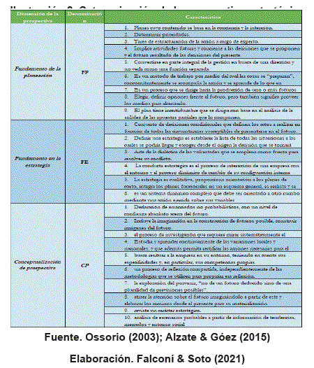 La prospectiva estratégica contempla una dinámica entrelazada entre los conceptos de prospectiva, estrategia y planificación, puesto que, cada uno se soporta el otro, con base en esto se determinó la caracterización (ver ilustración 2)