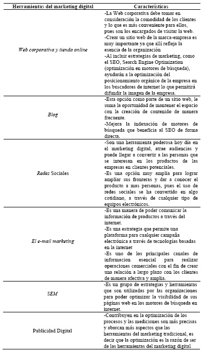 Asimismo, se menciona que con cada evolución el marketing renueva sus herramientas, y en el caso del marketing digital son diversas las herramientas utilizadas para que las empresas logran un buen posicionamiento frente a su competencia, en este sentido el objetivo de esta investigación se basa en analizar las herramientas más utilizadas en el marketing digital en las empresas, a través de una investigación de diseño bibliográfico y de tipo documental.