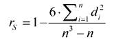Donde: di=xi-yi (i = 1,2, n; n =Nro. de parejas de rangos). Será rS = +1 cuando la concordancia entre los rangos es perfecta por lo tanto di= xi - yi = 0, mientras que será rS = -1 cuando la discordancia es perfecta y cuando no existe concordancia y discordancia entonces rS = 0.