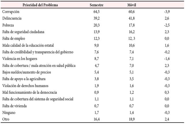 Tabla 1 Problemas sociales según prioridad en Perú.
