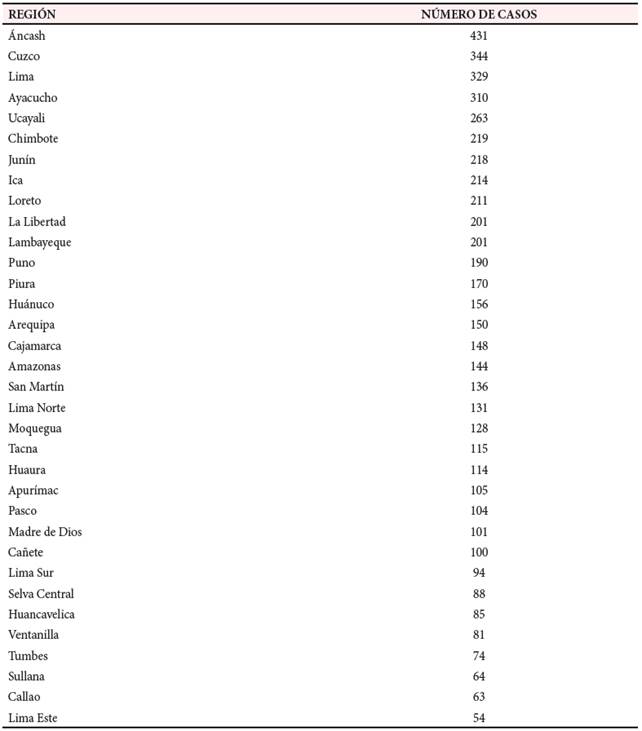 Tabla 2 Las regiones de Perú con más casos de corrupción