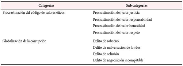 Este fenómeno de la procrastinación con el devenir del tiempo, fluye consciente o inconscientemente en la activación de los actos humanos en base a los antivalores, permitiendo los actos ilícitos aliarse con dichas personas, es allí donde se muestran las diversas formas de delitos de corrupción. En el caso estudiado, la procrastinación de la honestidad, donde las autoridades muestran actos deshonestos implica una articulación directa con el delito de soborno en un alto grado; tan igual como el antivalor falta de respeto articula con mayor fuerza con el delito de negociación incompatible.
