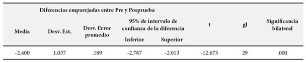 Tabla 4 Resultados de la prueba T de Student para muestras relacionadas.