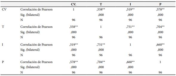 Tabla 3. Correlación de Pearson de variables de estudio.