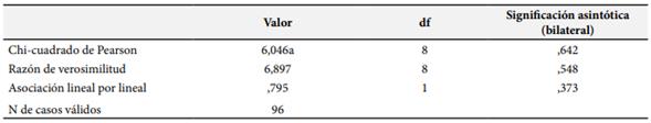 Los resultados presentados en la Tabla 5 muestran la asociación entre el nivel de instrucción y la calidad de vida laboral. Se utilizaron diferentes pruebas estadísticas para evaluar esta asociación, como el chi-cuadrado de Pearson, la razón de verosimilitud y la asociación lineal por lineal.