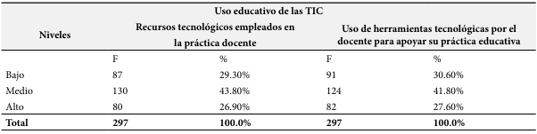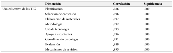 Tabla 1. Uso educativo de las TIC por dimensiones.