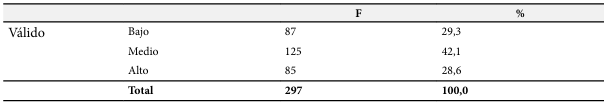 En la Tabla 2, se evidencia que el 29.3% de estudiantes perciben que el nivel es bajo, mientras que el 42.1% perciben que el nivel es medio y el 28.6% indican que el nivel es alto.
