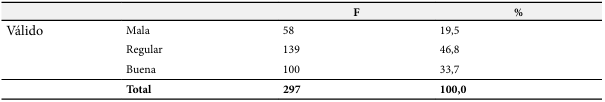 En tanto, en la Tabla 4 se evidencia que el desempeño docente, se tiene que el 19.5% de estudiantes perciben que el nivel es malo, mientras que el 46.8% perciben que el nivel es regular y el 33.7% indican que el nivel es bueno.
