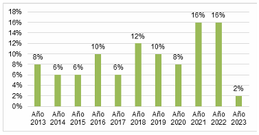 Publicaciones en los últimos 10 años (2013-2023).