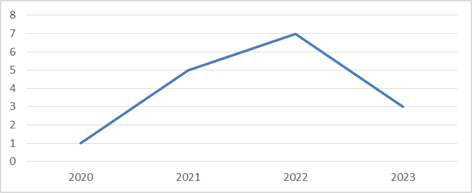 En un contexto específico, la tendencia en el número de investigaciones sobre la innovación del liderazgo docente en relación con los nuevos paradigmas educativos mostró un aumento gradual a lo largo de los años, reflejando un creciente interés por la adaptación e implementación de prácticas de liderazgo innovadoras frente a los desafíos emergentes en el ámbito educativo (ver Figura 3).