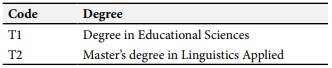 The participants in this research were two English teachers employed at the school. Teacher 1 held a degree in Educational Sciences with a specialization in English, while Teacher 2 had a master’s degree in linguistics applied to teaching English as a foreign language. ASs evidenced in Table 1.