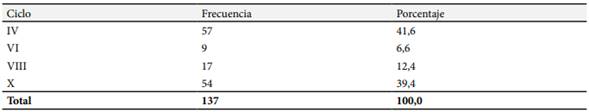 El estudio tuvo un enfoque cuantitativo, no experimental, de corte transversal y alcance correlacional. La población estuvo conformada por los estudiantes de la Facultad de Educación de una Universidad Pública en Lima. De esta población se extrajo una muestra no probabilística de 137 estudiantes de dos especialidades de la Escuela Profesional de Educación Secundaria, tal como se presenta en la Tabla 1.