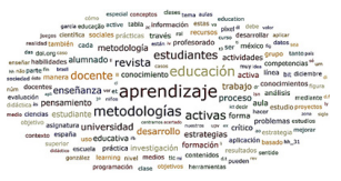 Aprendizaje. El término más destacado en la nube de palabras, subraya la centralidad del proceso de adquisición de conocimientos y habilidades mediante metodologías activas. Este enfoque se alinea con la necesidad de preparar a los estudiantes para enfrentar desafíos prácticos y profesionales de manera efectiva.