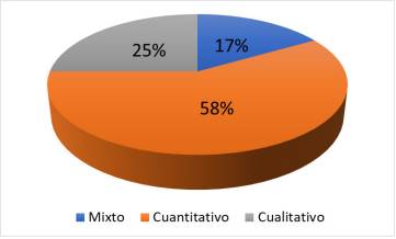 En la Figura 3, se muestra que, el 58% de ellos han desarrollado un enfoque cuantitativo. Una de las razones que se puede precisar es que permite la recopilación y el análisis de los datos numéricos para reconocer los resultados objetivos y precisos. Es así que se obtiene de manera sistemática los reportes para realizar las comparaciones y poder establecer las tendencias o generalizaciones de los resultados.