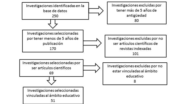 Para la realización del estudio, se empleó el método PRISMA, siguiendo criterios de inclusión y exclusión previamente establecidos. Se llevó a cabo un proceso de recopilación y revisión de artículos provenientes de diversas bases de datos, entre ellas Journals Indexed, SciELO y Scopus, con el propósito de identificar investigaciones que tuvieran en común el uso de la tecnología como recurso para el aprendizaje. Esto permitió obtener una visión general sobre la aplicación de la tecnología en la praxis docente y su impacto en los estudiantes del sector urbano de Ica en los últimos cinco años.