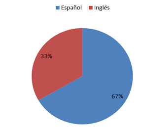La Figura 2 destaca que el 67% de los documentos consultados están escritos en idioma español y el 33% en idioma inglés. Lo que permite evidenciar que la mayoría de los documentos revisados fueron escritos en idioma español.
