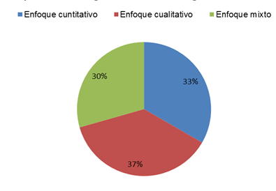 En la Figura 5 se representa el porcentaje de los enfoques metodológicos que orientaron los estudios revisados. Siendo el 30% de enfoque mixto, el 33% de enfoque cuantitativo y el 37% de enfoque cualitativo. Lo que deja en evidencia que la minoría de las investigaciones se orientó por el enfoque mixto y la mayoría por el enfoque cualitativo.