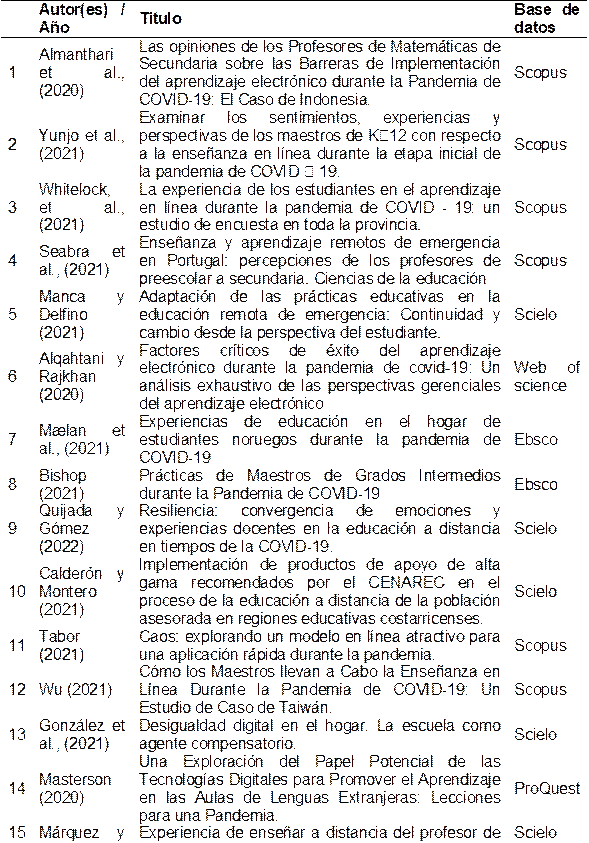Las medidas adoptadas a partir de la pandemia de COVID-19 ha tenido un impacto significativo en el sistema educativo mundial. El cierre de los recintos educativos obligó a los educadores a adaptar sus prácticas a un entorno de aprendizaje en línea. Esta transición rápida y sin precedentes generó una serie de desafíos y oportunidades para el sistema educativo. En la Tabla 2 que se presenta a continuación resume los hallazgos de 25 investigaciones sobre los cambios en el sistema educativo a partir del COVID-19.