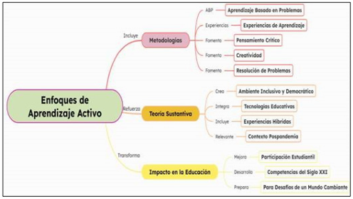 Enfoques de aprendizaje activo: son estrategias pedagógicas centradas en el estudiante que promueven la participación dinámica, la reflexión crítica y la construcción colaborativa del conocimiento en el aula. Estas metodologías fomentan la interacción significativa entre estudiantes y docentes, creando un ambiente de aprendizaje inclusivo y democrático que responde a las diversas necesidades educativas. Incorporan técnicas innovadoras como el aprendizaje basado en problemas (ABP), la gamificación y el uso de tecnologías educativas avanzadas, estimulando el desarrollo de habilidades de pensamiento de orden superior y competencias sociales. En el contexto pospandemia, estos enfoques se han adaptado para integrar herramientas digitales y experiencias de aprendizaje híbridas, promoviendo una convivencia democrática que fortalece la autonomía del estudiante, (Ferreira et al., 2023; Ilie et al., 2024; Khoshnoodifar et al., 2024).