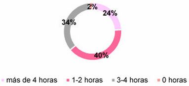 Con relación, a la segunda sección, se destacó el tipo en que se dedicaba el estudiante a la investigación y el tipo de investigación que realiza, con el fin de tener un panorama general del contexto. En la Figura 1, se observa que el 40% de los estudiantes asigna 1-2 horas semanales para actividades de investigación, mientras que el 34% dedica 3-4 horas. Además, el 24% destina más de 4 horas, y solo el 2% afirma no dedicar tiempo a la investigación. Aunque la mayoría de los estudiantes invierte tiempo semanal en investigación, 1-2 horas resultan insuficientes para indagaciones a profundidad, señalando la necesidad de fomentar la investigación.