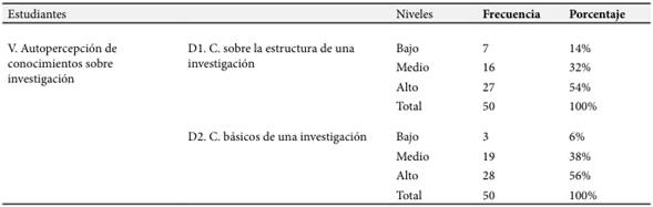Autopercepción de conocimientos sobre investigación